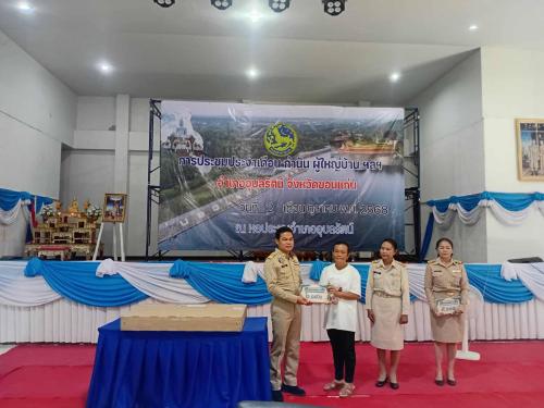 2.มอบเงินค่าวัสดุก่อสร้างห้องน้ำ ใหแก่ นายทองทรัพย์ สุทธิสาร ซึ่งเป็นผู้พิการ บ้านเลขที่ 13 บ้านโนนอินทร์แปลง หมู่ที่ 3 ตำบลทุ่งโป่ง มูลค่า 5,000 บาท